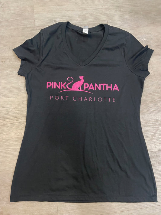 Pink Pantha V-Neck Women's Tee Shirts